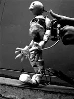 Apresento o espetáculo "Raro" da Cia del Maldito Martillo. Conhecendo o material que me foi enviado fiquei bastante encantada com a linguagem do espetáculo, que usa bonecos visualmente diferenciados. Não são bonecos com formas "certinhas" e pintura plasticamente bela mas, bonecos bem pequenos que transmitem nas entrelinhas de suas formas, informações que se relacionam com a história do espetáculo. A matéria prima? Arames, pequenas ferragens, mecanismos e formas.