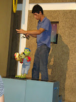 A tarde, iniciou-se a Oficina do Eduardo. Um pouco de teoria de movimento de bonecos e muita gente aberta a aprender. depois demos início ao corte das peças. Tornei-me aluna hoje... estamos sendo incrivelmente bem tratados...